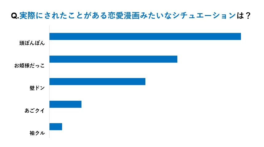 女の子が彼氏や好きな人からされたことがある恋愛漫画のシチュエーションでは、頭ぽんぽんが1番多い結果となりました😳