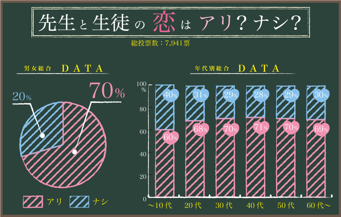 このアンケートを見ると先生との恋愛がおっけーな女の子が多いみたいです😳